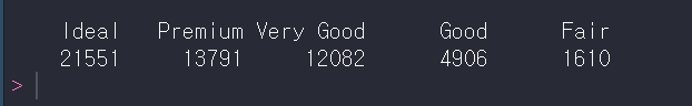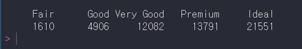 table(diamonds$cut) 의 실행결과는 아래와 같아요. 아래는 무엇을 의미하는 걸까요?