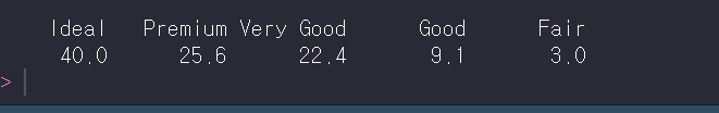 prop.table에 cut의 빈도를 넣어주고 곱하기 100을 하면 아래와 같이 결과를 얻을 수 있어요!