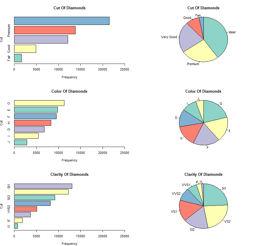 barplot(sort(table(diamonds[,i]) , decreasing = FALSE),