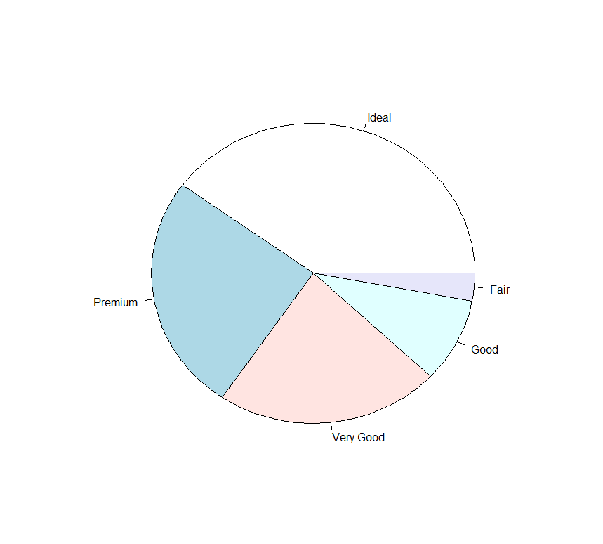 pie(sort( prop.table(table(diamonds$cut))*100 , decreasing = TRUE))
